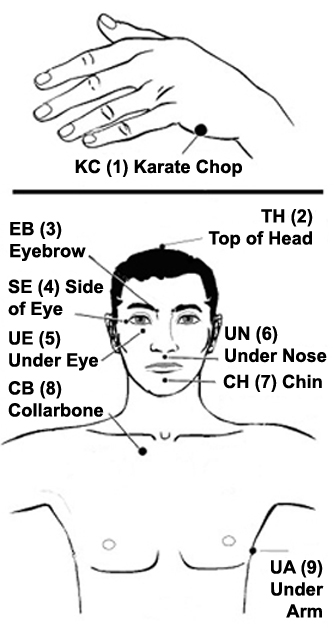 EFT Emotional Freedom Techniques, (Técnicas para la Liberación Emocional), dicho sencillamente, es una versión emocional de la acupuntura, excepto en que no se requieren agujas, sino que en su lugar usted estimula en su cuerpo ciertos puntos meridianos de energía bien establecidos, al golpearlos suavemente con las puntas de sus dedos (hacer tapping) (FUENTE: